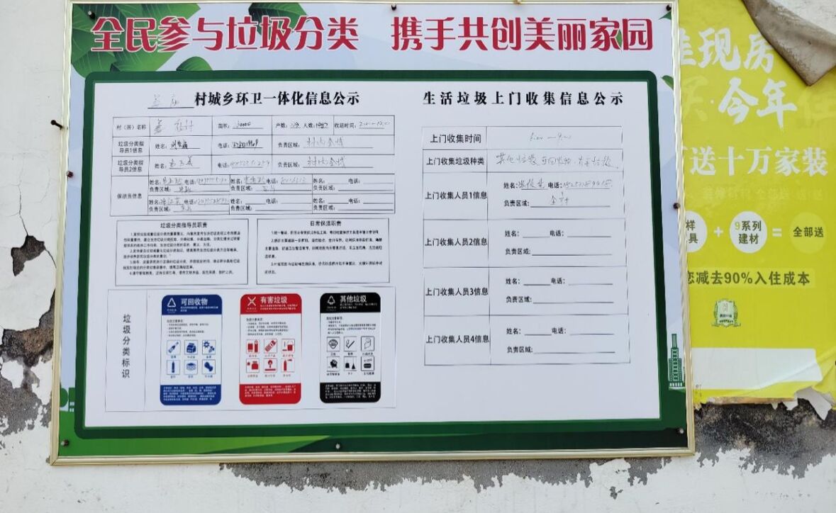圖為姜廟村環(huán)衛(wèi)一體化信息公示欄