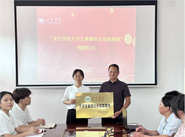 為更好地發(fā)揮校地合作,將學習宣傳貫徹習近平生態(tài)文明思想作為青年學生學習的重點內(nèi)容,引領大學生們踐行“綠水青山就是金山銀山”理念,主動參與生態(tài)文明建設,為建設生態(tài)福建增添“青動力”,現(xiàn)場還舉行了“龍巖學院大學生暑期社會實踐基地”授牌儀式。