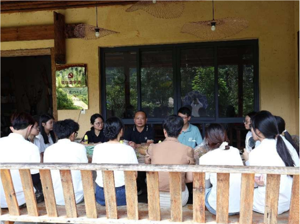 捷文村村支書李財林向?qū)嵺`隊師生分享林改經(jīng)驗
