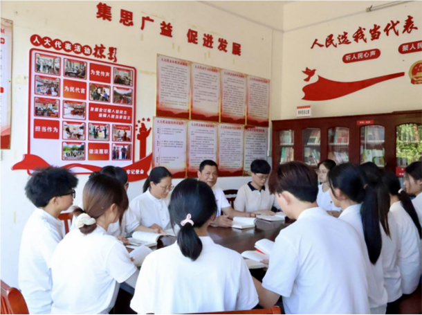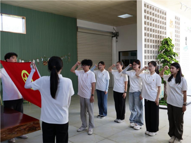 在實踐過程中,實踐隊還開展了《習近平與大學生朋友們》第一卷、第二卷的讀書分享會,邀請城廂鎮(zhèn)宣傳委員劉永方和村干部一同聯(lián)學共學。會后,實踐隊重溫了入團誓詞,并紛紛表示要做“綠水青山就是金山銀山”理念的積極傳播者和模范踐行者。