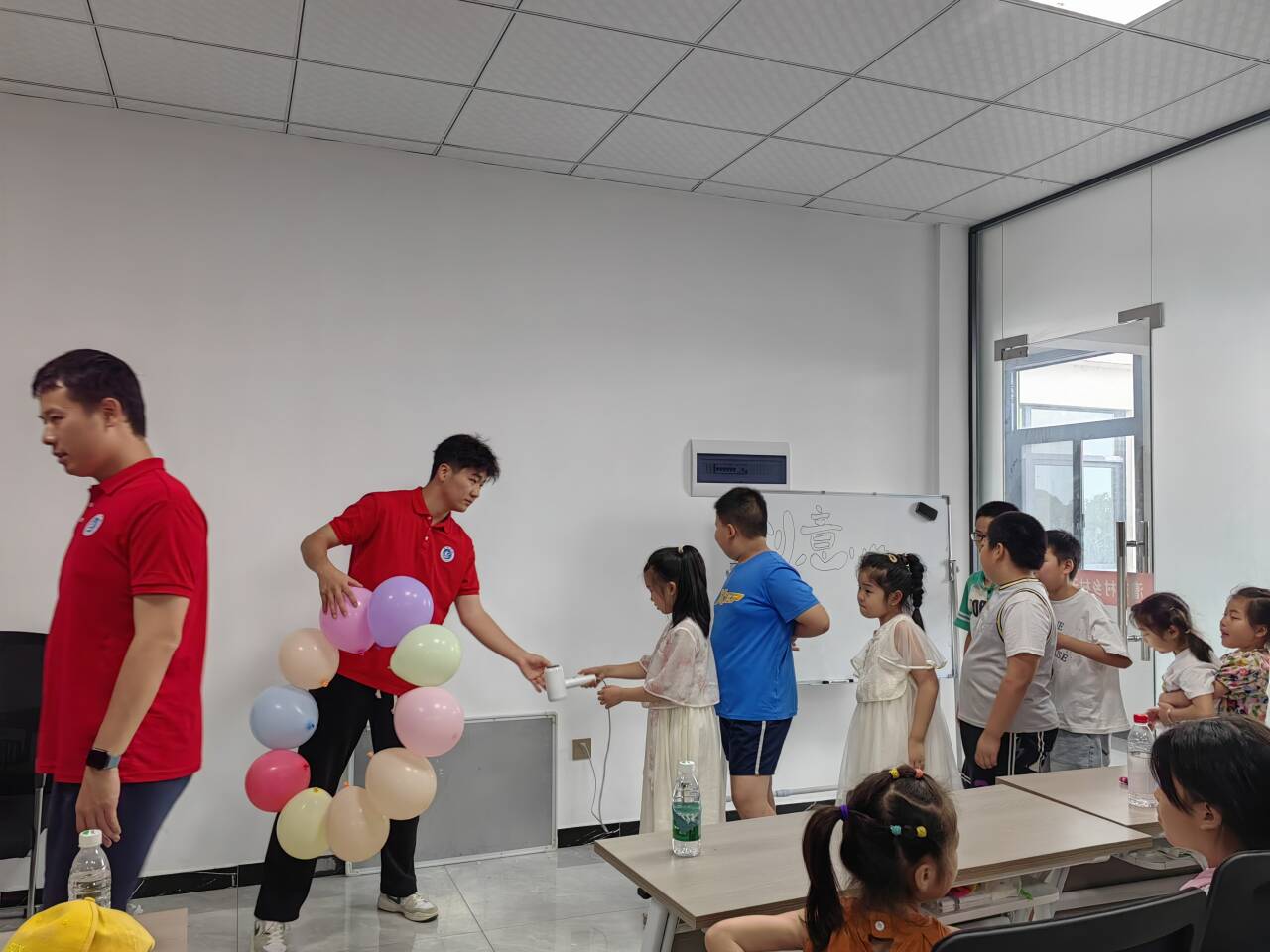 2024年7月17日下午,池州學(xué)院“微芒成陽” 支教實(shí)踐團(tuán)在田園課堂上演了一場精彩的科學(xué)實(shí)驗(yàn)秀。課程以“吹風(fēng)機(jī)與氣球圈的魔法”為主題,瞬間吸引了孩子們的注意。