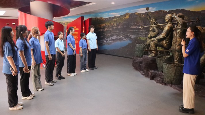 “錚錚鐵骨漢,拳拳為民情。氣概撼天地,壯志泣鬼神。”那些用扁擔挑起重物的勞動者們的雕像,正是扁擔精神的生動寫照。他們面對惡劣的自然環(huán)境和物資匱乏的現(xiàn)實時堅毅的眼神,激勵著隊員們學(xué)習(xí)他們心系人民,堅持奉獻的偉大精神。“我志愿加入中國共產(chǎn)黨,擁護黨的綱領(lǐng),遵守黨的章程,履行黨員義務(wù),執(zhí)行黨的決定……”莊嚴的入黨誓詞在紀念館中響起。紅源實踐隊中的黨員們在領(lǐng)誓人辛?档膸ьI(lǐng)下舉起右拳,面向黨旗,重溫入黨誓詞,再一次用錚錚誓言詮釋入黨初心,堅定理想信念,進一步厚植愛黨愛國情懷。