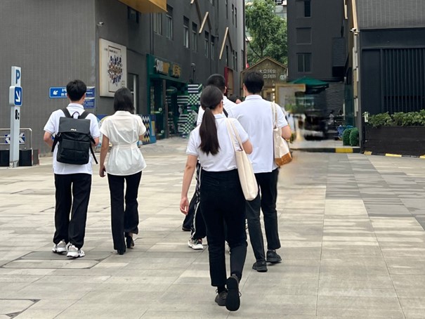 團(tuán)隊(duì)成員在四川衛(wèi)寧唐經(jīng)理帶領(lǐng)下參觀天府新谷孵化園區(qū)