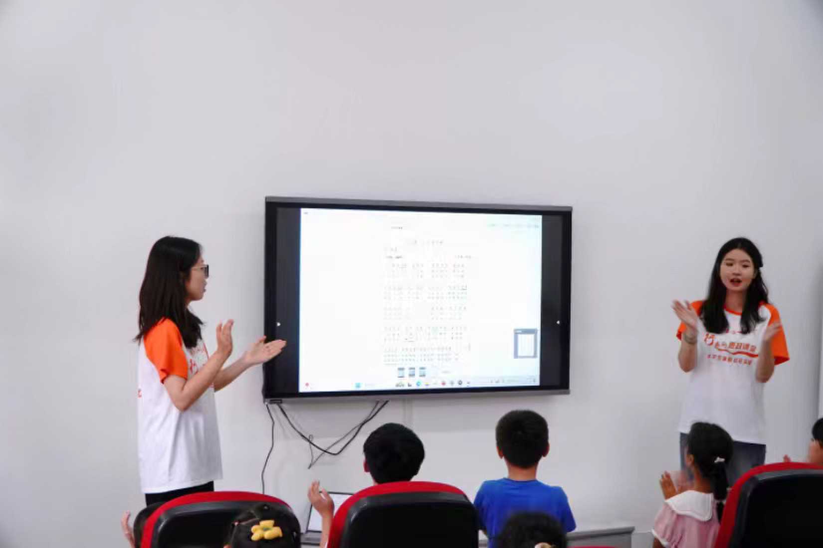首先開(kāi)展的是音樂(lè)課。成員們用一首孩子們耳熟能詳?shù)摹兜鞠恪穾ьI(lǐng)他們進(jìn)入音樂(lè)課堂,在活躍的氣氛下,成員們向孩子們介紹了奧爾夫聲勢(shì)律動(dòng),并帶領(lǐng)他們一起跟隨音樂(lè)律動(dòng)起來(lái);接著,成員們又向孩子們介紹了柯?tīng)栁氖謩?shì),并以一曲《我和你》引導(dǎo)他們一起做,課堂氛圍輕松活潑。