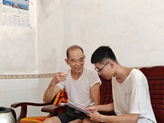 團(tuán)隊(duì)成員與村民陳大爺交流