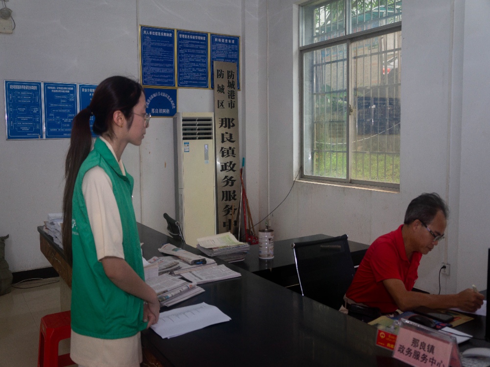 最后,實(shí)踐團(tuán)抵達(dá)那良鎮(zhèn)政務(wù)服務(wù)中心,向政府工作人員提供收集到的鄉(xiāng)村發(fā)展與建設(shè)方面的建議。工作人員向成員們介紹了政府對(duì)于鄉(xiāng)村振興工作的整體規(guī)劃與部署,同時(shí)還就基礎(chǔ)設(shè)施建設(shè)、水質(zhì)改善、特色產(chǎn)業(yè)發(fā)展、人才回流等關(guān)鍵議題展開(kāi)了深入的交流。