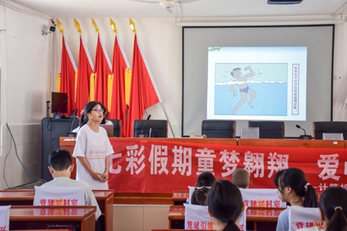 童心繪夢,以教啟智。志愿者何一珂、宋欣結(jié)合汛情和暑期的高溫天氣,精心設(shè)計了防溺水安全教育的教學(xué)內(nèi)容。何一珂通過生動的案例分析向孩子們展示了溺水事故頻發(fā)的原因、帶來的嚴(yán)重后果以及預(yù)防措施,讓他們深刻認(rèn)識到了防溺水的重要性。