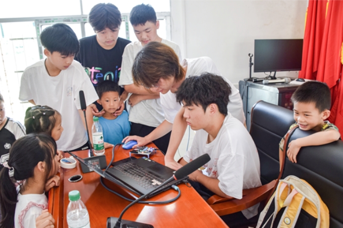 鄉(xiāng)村振興乃強國之基,青年人才是鄉(xiāng)村振興的中堅力量。為提升鄉(xiāng)村兒童的科學素養(yǎng),促進鄉(xiāng)村教育的全面發(fā)展,7月15日上午,湖南科技大學計算機科學與工程學院“數(shù)字‘計’憶”調(diào)研團在城步縣金興村開展了有關(guān)“嵌入式科普”的支教活動,給當?shù)貎和瘞碡S富的科學知識和實踐體驗。