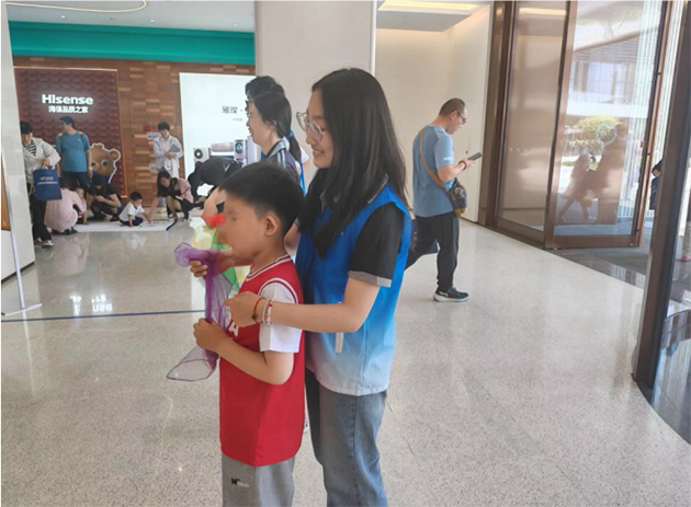 在7月6日開展的愛心義賣活動中,成員們與醫(yī)教中心的老師們攜手合作,共同搬運、整理義賣所需的物資;與孤獨癥“小攤主”們一起將義賣的故事書、玩偶、手工飾品等一一擺放整齊,用心打造出一個溫馨而充滿愛意的義賣小攤。成員們輪流負責(zé)看攤,確保義賣過程的有序與安全。每當(dāng)有顧客駐足詢問,成員都以最熱情的態(tài)度迎上前去,協(xié)助“小攤主”們與顧客進行親切交流。在這個過程中,成員們表示與“小攤主”們的交流與協(xié)助,不僅拉近了彼此的距離,更加增強了他們與社會的交流。