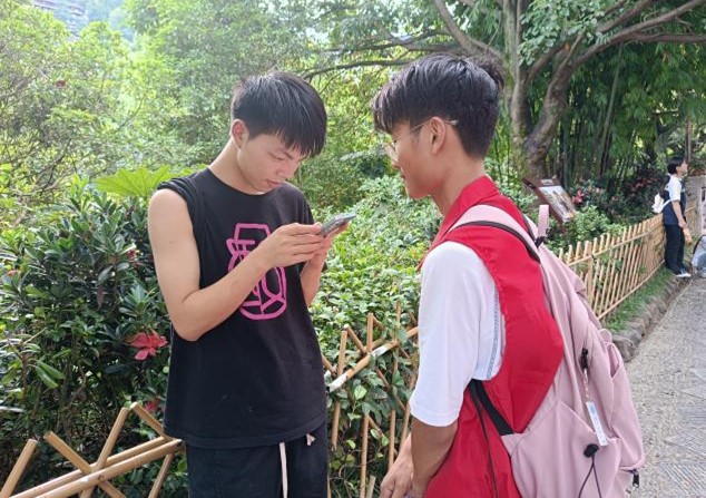 圖為團(tuán)隊(duì)成員請游客填寫問卷調(diào)查