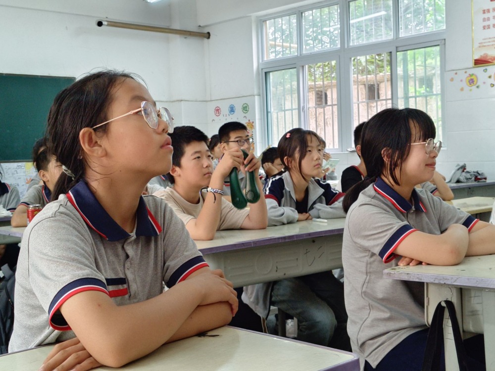 7月15日上午,教室內傳出了經典的電影配樂,學生們隨之輕輕搖擺,通過音樂提前沉浸在電影的氛圍之中。課堂伊始,志愿者以“看電影的樂趣”為話題,向學生們提出問題,學生們紛紛舉手,“順藤摸瓜”、興致勃勃地介紹著自己喜歡的電影。