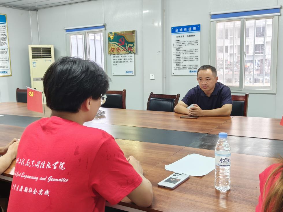 實(shí)踐團(tuán)成員首先與工地負(fù)責(zé)人見面并與之相互交流,成員們爭相提出自己的問題,了解工人及建筑工程行業(yè)的現(xiàn)狀,負(fù)責(zé)人對(duì)此進(jìn)行了細(xì)致地介紹。建筑業(yè)作為國民經(jīng)濟(jì)的重要支柱產(chǎn)業(yè)之一,為城市的快速發(fā)展做出了巨大貢獻(xiàn)。然而,建筑工人們在艱苦的工作環(huán)境中默默付出,往往面臨著諸多挑戰(zhàn)。尤其是近幾年建筑行業(yè)發(fā)展艱難而緩慢,由此建筑工人的生活也愈加不易。