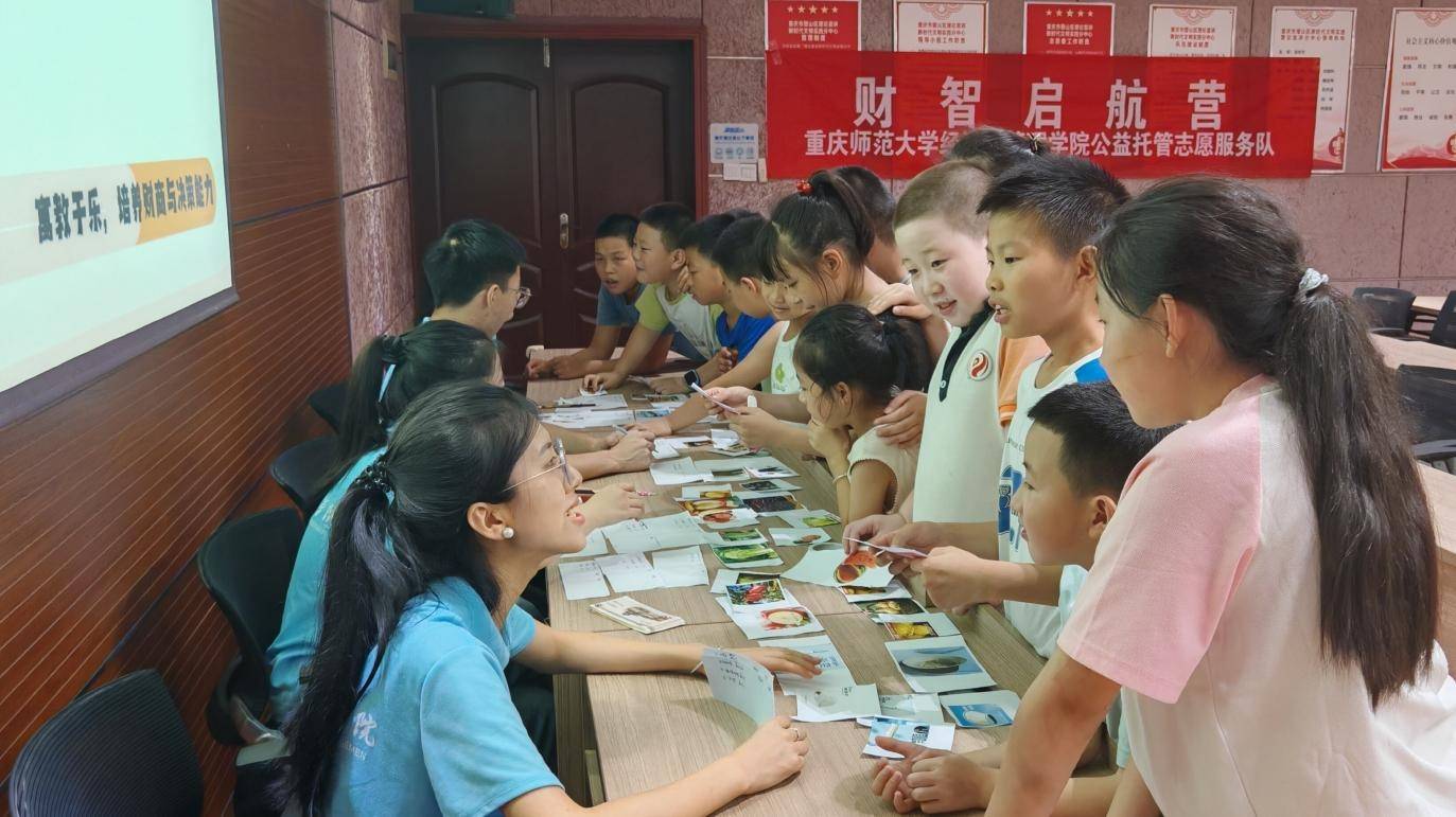 為培養(yǎng)少年兒童基礎(chǔ)交易技巧,幫助他們正確認(rèn)識物品價(jià)值,提高孩子們的溝通表達(dá)能力,重慶師范大學(xué)經(jīng)濟(jì)與管理學(xué)院“財(cái)智啟航營”公益托管志愿服務(wù)隊(duì)于7月19日來到重慶市璧山區(qū)璧泉街道華龍社區(qū)黨群服務(wù)中心開展了一次主題為“買賣技巧我在行”的游戲化教學(xué)活動。