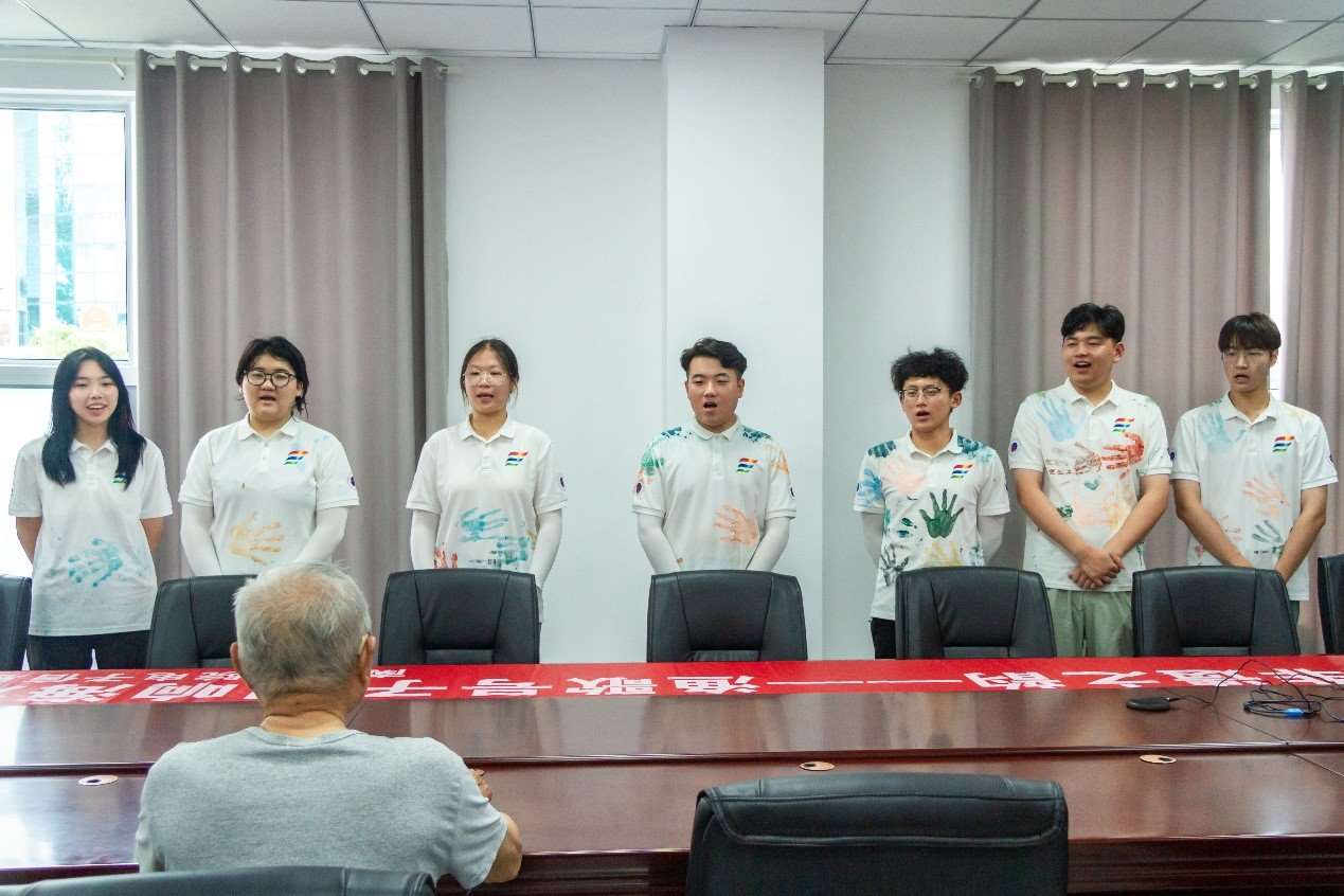 我們邀請到當(dāng)?shù)亓藵O歌號子的非遺傳承人—陸加友,通過采訪陸老,讓我們了解了漁歌號子的歷史和魅力,以及漁歌號子對漁民海上捕撈工作的重要。隨后八十多歲的陸老傳唱了他自己獨(dú)創(chuàng)的挑擔(dān)號子。他的歌聲鏗鏘有力,通過現(xiàn)場演示和互動教學(xué)的方式,向?qū)嵺`團(tuán)介紹漁歌號子的唱法和技巧。實踐團(tuán)們不僅了解了漁歌號子的文化內(nèi)涵,還積極學(xué)唱,體驗其獨(dú)特的魅力,展現(xiàn)了漁歌號子跨越時空的連接力和影響力。