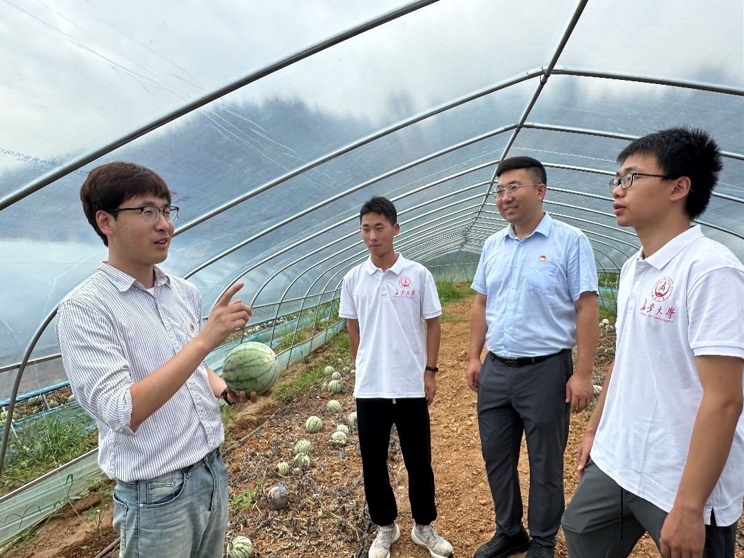 課上,付石向?qū)嵺`隊(duì)員介紹了商南縣蓮花臺(tái)村“一產(chǎn)茶菌果、二產(chǎn)礬硅鎂、三產(chǎn)康養(yǎng)游”的特色;課下,他帶領(lǐng)實(shí)踐隊(duì)員前往湘河精品西瓜示范園實(shí)地觀摩,為實(shí)踐隊(duì)員詳細(xì)介紹了示范園的建立過程及以西瓜為代表的農(nóng)產(chǎn)品種植、銷售狀況,使實(shí)踐隊(duì)員切實(shí)體會(huì)到特色產(chǎn)業(yè)對推動(dòng)鄉(xiāng)村農(nóng)業(yè)產(chǎn)業(yè)結(jié)構(gòu)調(diào)整、促進(jìn)地方經(jīng)濟(jì)發(fā)展的重要作用。