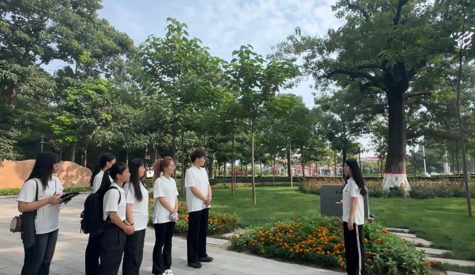 除了同樣來參觀學(xué)習(xí)的大學(xué)生們、外國友人們,實(shí)踐隊(duì)還采訪了本地居民——82歲的姐妹花,望著展板上的黑白照片,她們向隊(duì)員們親切地講述了照片上這位被焦裕祿救下的孩童的故事,為了繼承焦書記的遺志,父親給他改名為張繼焦,現(xiàn)在是焦裕祿陵園的守護(hù)者。