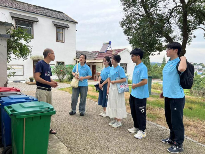 老師向成員介紹當?shù)乩诸惔胧┰谇О賵@教育實踐基地的實地調(diào)研中,老師給我們講述了目前鄉(xiāng)村治理的難點以及目前垃圾分類的重要性,首先垃圾分類是減少廢物對環(huán)境污染的重要手段之一。通過有效的分類,可以減少對土地、水域和空氣的污染,保護生態(tài)環(huán)境。同時,分類回收可以最大程度地利用資源,減少新資源的開采和能源消耗。垃圾分類直接促進了鄉(xiāng)村可持續(xù)發(fā)展的實現(xiàn)。通過將廢物變廢為寶,社會資源的有效利用不僅降低了生產(chǎn)成本,也為當?shù)剜l(xiāng)村振興帶來了環(huán)境可持續(xù)性的提升。我們發(fā)現(xiàn)當?shù)赜兄诸惖幕A(chǔ)設(shè)施,在農(nóng)村是非常難得的,當?shù)乩诸愖龅淖詈玫牡胤皆谟趶N余垃圾的回收,每家每戶都會準備好專門存放廚余垃圾的回收桶,當?shù)卣鋫淞藢iT的垃圾車來幫助居民,在固定的時間挨家挨戶收取廚余垃圾最終送達同一地點集體處理,這是鄉(xiāng)村建設(shè)中發(fā)展邁出的很大一步,在鄉(xiāng)村居民中種下了一顆垃圾分類的意識的種子,同時老師也向我們提及目前我們大學與教育實踐基地的合作也越來越廣泛,希望在以后能夠在大學中也借鑒當?shù)乩诸惖膬?yōu)秀成果,取長補短,共同發(fā)展,在環(huán)境保護和資源回收利用的進程中繼續(xù)前景,從而促進可持續(xù)發(fā)展以及社會責任感的建立。