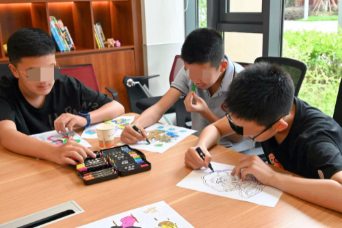 團(tuán)隊(duì)成員耐心地指導(dǎo)殘障兒童使用正確的握筆方法和作畫姿勢,教他們用點(diǎn)、線和簡單的形狀進(jìn)行初步描摹,讓孩子們大膽地畫出心中所想。這一繪畫課程大大激發(fā)了殘障兒童的創(chuàng)造力與自我表達(dá)能力,能夠讓他們在繪畫的世界里找到屬于自己的聲音。