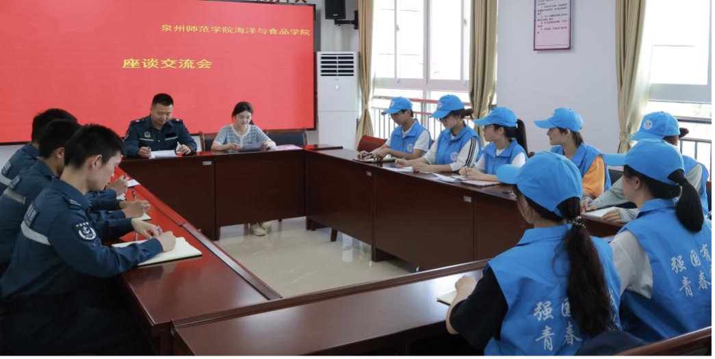 實(shí)踐隊(duì)員與泉州海警局執(zhí)法隊(duì)員座談交流(賴衍欽 攝)