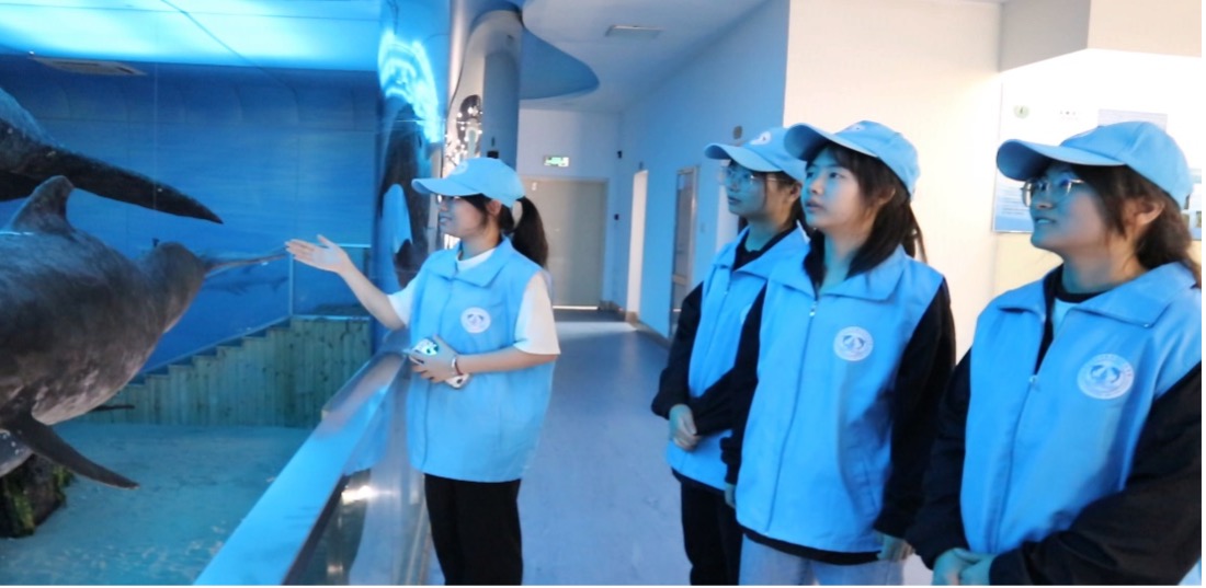 實(shí)踐隊(duì)在海洋三所鯨豚館觀察學(xué)習(xí)鯨豚標(biāo)本(徐彤 攝)