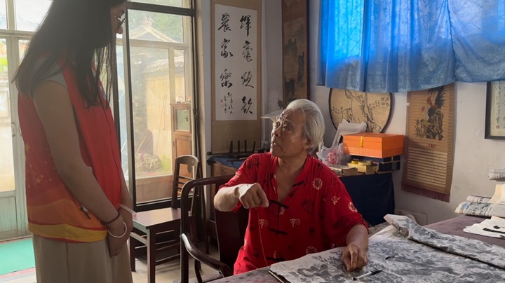 實(shí)踐隊(duì)成員采訪蒲松齡后代蒲章俊先生(陳新宇攝)