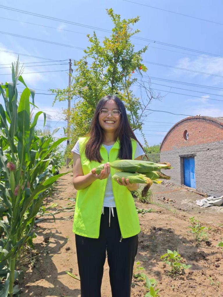 經(jīng)過前期參觀學(xué)習(xí)后,柴老師及中心負責人帶領(lǐng)隊員們深入當?shù)氐霓r(nóng)戶家中,該農(nóng)戶家以種植核桃為生計,由于正值夏季,并不是核桃成熟時期,只看到還長在樹上,十分青澀仍在成長期的核桃。參觀完核桃園后,隊員們還參觀了農(nóng)戶家中種植的玉米、桑葚、黃花菜等農(nóng)產(chǎn)品,親身體驗了采摘玉米的樂趣。