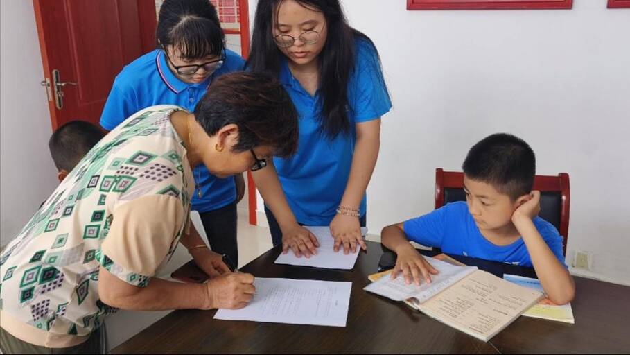 圖4 志愿者輔導(dǎo)孩子作業(yè)