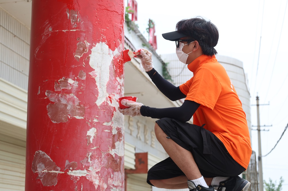 首先,他們進行了石柱翻修,在翻修的過程中不僅需要解決美觀問題,更要考慮到村民的實際需求和安全。為此,實踐團制定了一套全面的翻修方案,包括墻皮鏟除,刷新柱面,后期維護等多個方面。
