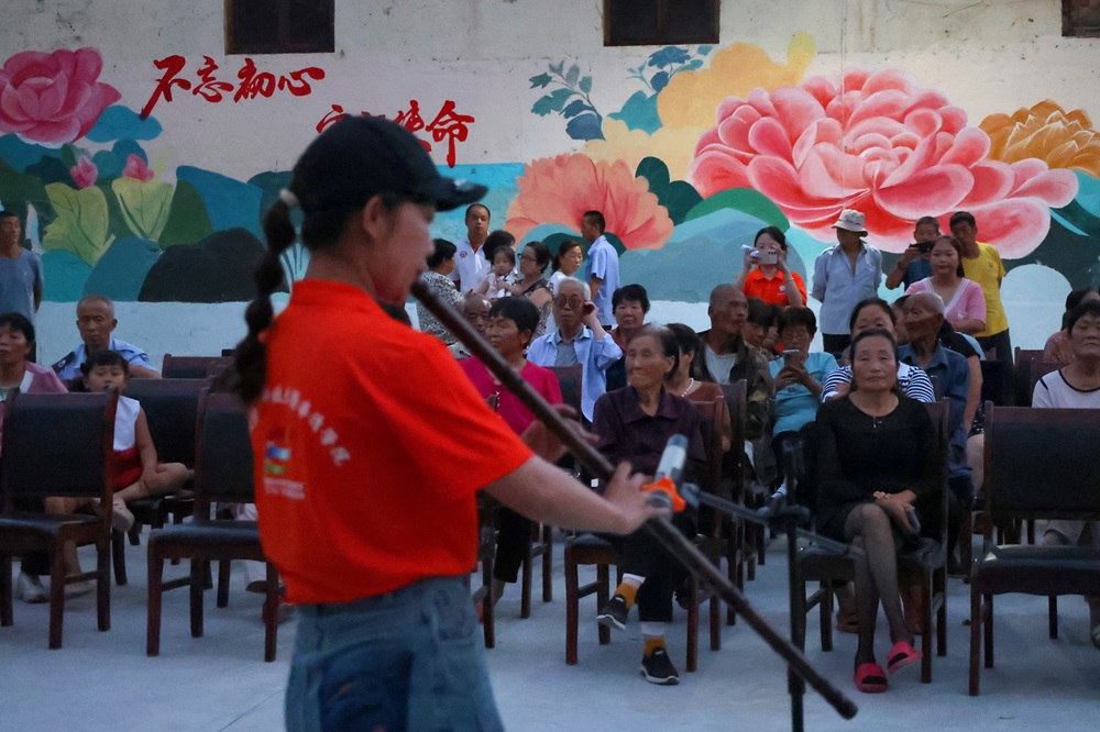 演出雖落幕,但故事遠未結束。在為期十天的實踐活動中,實踐團成員們不僅帶來了這場視覺與聽覺的盛宴,更以實際行動踐行了鄉(xiāng)村振興的使命。他們無償為村莊繪制了色彩斑斕的文化墻,讓昔日單調(diào)的墻面煥發(fā)出勃勃生機;開展美術支教,激發(fā)孩子們對藝術的熱愛與追求;組織村民參與漆扇藝術體驗,傳承與發(fā)展非物質(zhì)文化遺產(chǎn);同時,還進行了環(huán)保宣傳講座,提升了村民的環(huán)保意識,共同守護綠水青山。