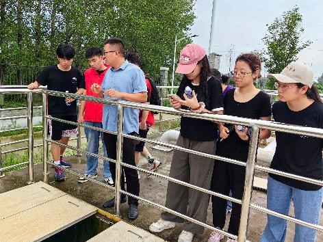 17號上午,團隊來到中化現(xiàn)代農(nóng)業(yè)MAP臨泉技術(shù)服務(wù)中心,中化MAP(Modern Agriculture Platform)結(jié)合臨泉當(dāng)?shù)乩淆g化嚴重、青年人少有人務(wù)農(nóng)的現(xiàn)狀,以集成現(xiàn)代農(nóng)業(yè)種植技術(shù)和智慧農(nóng)業(yè)為手段,提供線上線下相結(jié)合、涵蓋農(nóng)業(yè)生產(chǎn)全過程的現(xiàn)代農(nóng)業(yè)綜合解決方案。負責(zé)人還介紹了各式的機械器具,更近一步加深了成員們對“規(guī);N植”的理解。緊接著,團隊前往當(dāng)?shù)氐奈鬯幚韽S,了解到污水處理的具體步驟,負責(zé)人還談及當(dāng)前國內(nèi)環(huán)境領(lǐng)域的就業(yè)環(huán)境和發(fā)展?fàn)顩r。