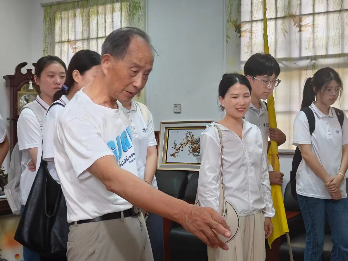 為深入了解巢湖非遺繪畫文化精湛的藝術創(chuàng)作以及獨特的工藝傳承。巢湖學院工商管理學院赴巢湖“懿本圖”非遺文化傳承實踐團于7月16日清晨由指導老師許沙帶隊一同拜訪省級非遺樹雕畫傳承人尹修平先生。