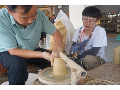 尤為珍貴的是,師生們有幸與非遺花茂土陶第四代傳承人母先才進行了面對面的交流。據了解,母先才已從事陶藝43年,他強調,土陶工藝的精髓在于對傳統(tǒng)的尊重與創(chuàng)新的結合,每一件作品都應是文化和情感的載體。母大師的言傳身教,讓實踐隊師生們深刻體會到工匠精神的內涵,以及傳統(tǒng)手工藝在現(xiàn)代社會中的價值與意義。