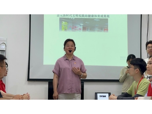 在座談會上,金元社區(qū)黨委書記袁琴介紹了社區(qū)在基層治理和服務(wù)居民等方面的創(chuàng)新舉措與實踐經(jīng)驗,并向團(tuán)隊師生們詳細(xì)闡述了金元社區(qū)的“一中心,一張網(wǎng),十連戶”運作機制,展現(xiàn)了社區(qū)治理現(xiàn)代化的生動實踐。她強調(diào),在中國共產(chǎn)黨的正確領(lǐng)導(dǎo)下,以“人民為中心”的發(fā)展理念在社區(qū)建設(shè)中轉(zhuǎn)化為實實在在的民生福祉,才有了金元社區(qū)現(xiàn)如今的美好生活。