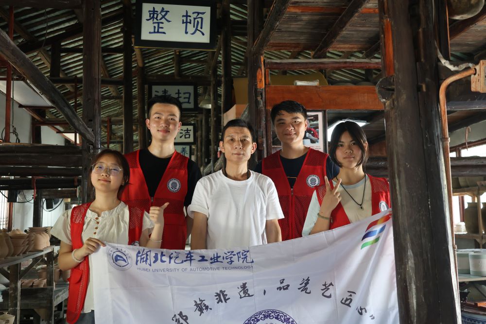 圖為小隊(duì)成員在觀看手工匠人加工瓷器