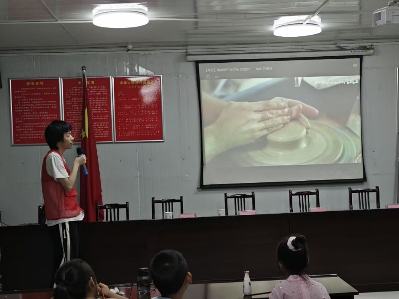 活動(dòng)現(xiàn)場,鄂贛瓷緣實(shí)踐小隊(duì)的志愿者們?yōu)楹⒆觽円餐瑯訋砹擞蒙鷦?dòng)有趣的陶瓷文化課程。課程內(nèi)容不僅涉及陶瓷的制作工藝,還涵蓋了陶瓷藝術(shù)的前世今生。小朋友們認(rèn)真聆聽,積極回答問題,展現(xiàn)出對陶瓷藝術(shù)的濃厚興趣。