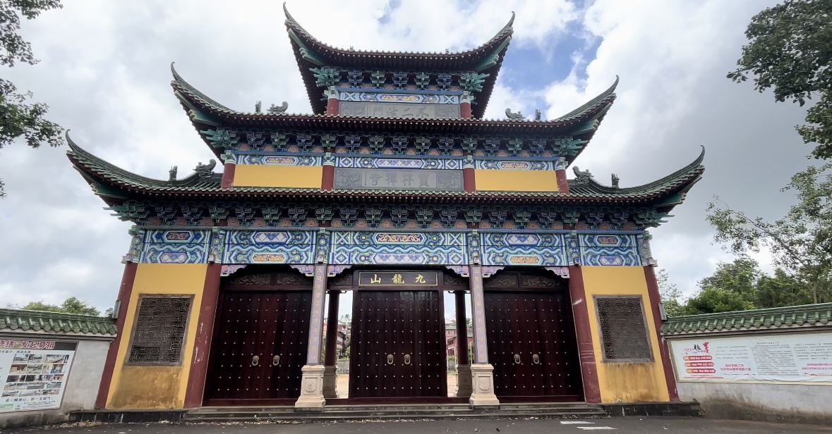 實(shí)踐團(tuán)隊(duì)的下一站是調(diào)風(fēng)鎮(zhèn)九龍山自然風(fēng)景區(qū),這里四面環(huán)山,溪水長(zhǎng)流,九條山脈在此會(huì)聚,宛如九龍戲水,故得名“九龍山”。不僅如此,這里還擁有粵西規(guī)模最大名剎九龍山寶林禪寺,該寺環(huán)境幽靜,空氣清新,景致宜人,是游覽觀光的好去處。