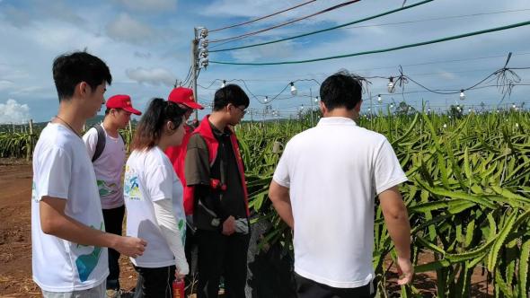 7月16日下午,實踐團隊來到了調(diào)風(fēng)鎮(zhèn)火龍果種植基地。在基地管理人員的帶領(lǐng)下,實踐團隊參觀了果園的各個區(qū)域,了解火龍果的生長環(huán)境、種植技術(shù)和病蟲害防治等方面的知識。基地管理人員也向?qū)嵺`團隊分享了他們的火龍果產(chǎn)業(yè)發(fā)展經(jīng)驗,通過引進先進的種植技術(shù)和管理經(jīng)驗,不斷優(yōu)化火龍果的種植結(jié)構(gòu),在不斷提高產(chǎn)量和品質(zhì)的同時保證果實的口感和營養(yǎng)價值。