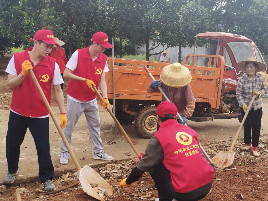 。ㄍㄓ崋T:陳德儀 陳銀香 徐楊龍)為積極響應(yīng)鄉(xiāng)村振興的國家號召,進(jìn)一步優(yōu)化農(nóng)村人居環(huán)境,合理規(guī)劃鄉(xiāng)村閑置荒廢地,發(fā)揮高校助力鄉(xiāng)村“百千萬工程”作用。7月16日,仲愷農(nóng)業(yè)工程學(xué)院“百千萬工程”突擊隊(duì)經(jīng)貿(mào)學(xué)院追“風(fēng)”助農(nóng)實(shí)踐團(tuán)隊(duì)在調(diào)風(fēng)鎮(zhèn)橫山村參與調(diào)風(fēng)鎮(zhèn)橫山村廣東省特色村建設(shè)活動。調(diào)風(fēng)鎮(zhèn)副鎮(zhèn)長何志凱、橫山村村民、仲愷追“風(fēng)”助農(nóng)實(shí)踐團(tuán)隊(duì)參加本次活動。