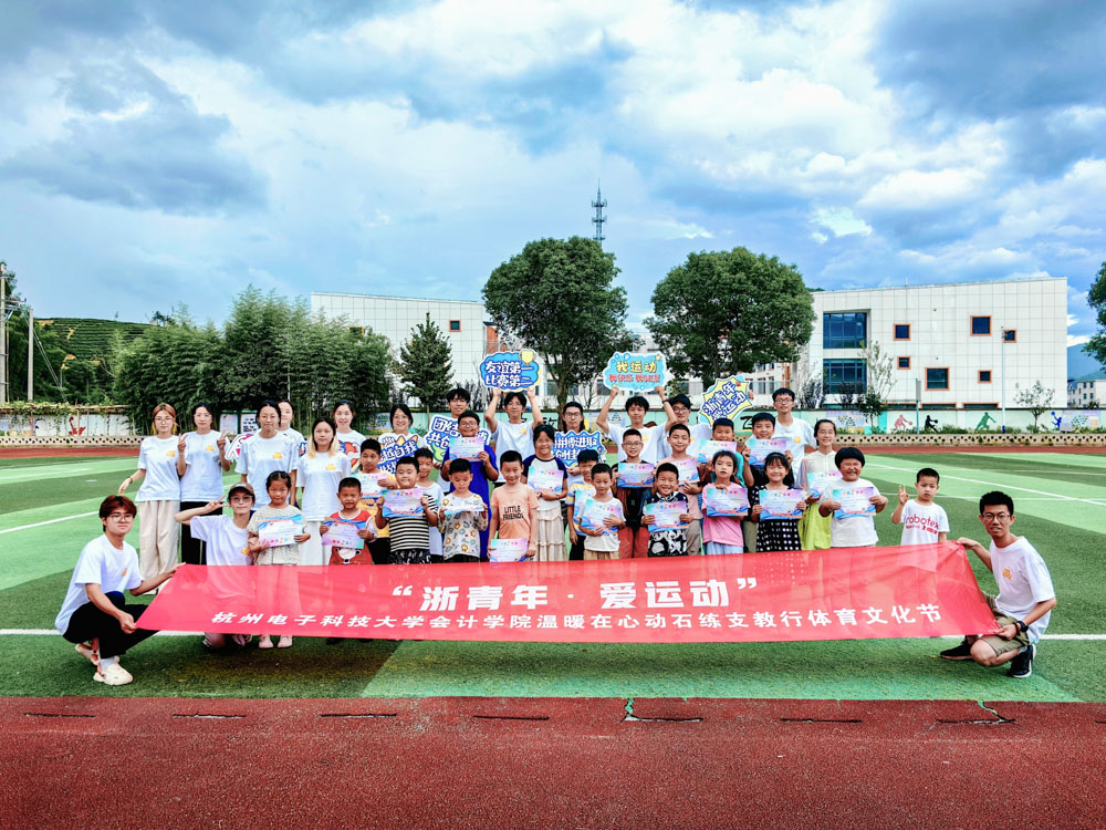 為積極響應“浙青年·愛運動”號召,7月24日,杭州電子科技大學會計學院“溫暖在心動”暑期支教社會實踐團在石練鎮(zhèn)中心小學的操場上舉行了一年一度的體育文化節(jié)。本次活動,團隊有幸邀請到了石練鎮(zhèn)中心小學的教導主任吳雷健老師進行開幕式致辭與頒獎。比賽共分為四項內容:螃蟹賽跑、一圈到底、掌上明珠、大豐收。五支學生隊伍、兩支教師隊伍經過激烈比拼,按組別依次角逐出了一二三等獎。