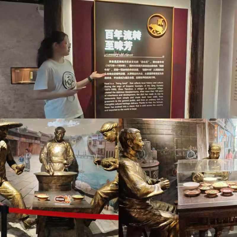 中國青年網(wǎng)甘肅嘉峪關(guān)7月24日(通訊員劉詩羽)南京師范大學(xué)泰州學(xué)院院長助理團“傳承華夏,非遺留芳”暑期社會實踐團隊四川樂山分隊的隊員們,深入樂山蘇稽古鎮(zhèn),探訪了承載著厚重歷史與文化底蘊的蹺腳牛肉非遺館,不僅見證了這道非物質(zhì)文化遺產(chǎn)的獨特魅力,更親身體驗了其令人回味無窮的美味。非遺館坐落于古色古香的楊碼頭街清代四合院內(nèi),占地面積約千余平方米,內(nèi)設(shè)四大展區(qū),逐一揭開蹺腳牛肉的神秘面紗。