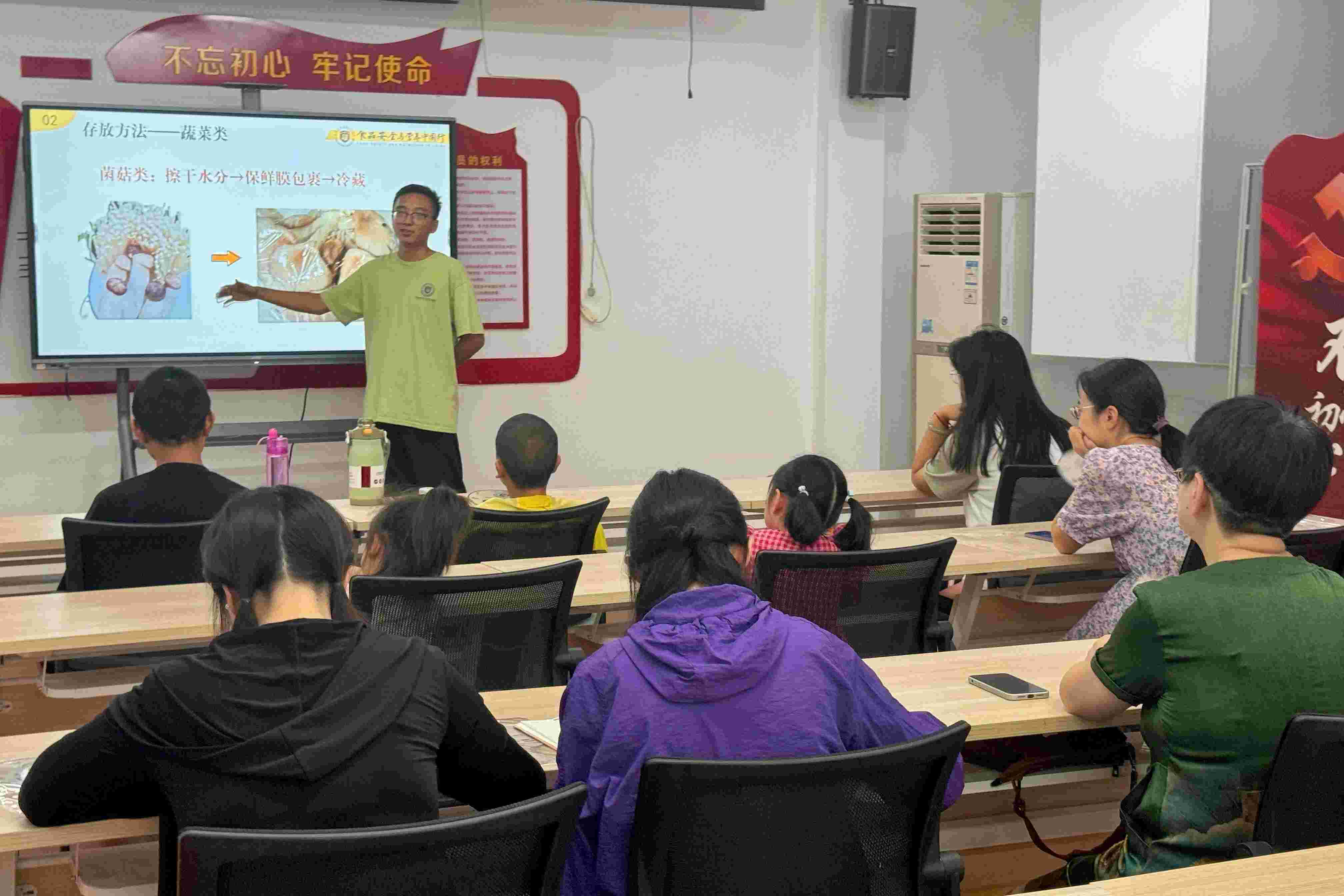 在華農(nóng)西社區(qū),實踐團(tuán)圍繞夏季食品保鮮為到場居民詳細(xì)科普了食品保鮮方法。實踐團(tuán)講師分門別類地介紹了新鮮果蔬、熟食、肉類魚類、奶制品等不同食物的正確存放時間及存放方法,還針對日常容易出現(xiàn)的誤區(qū)進(jìn)行了科普。