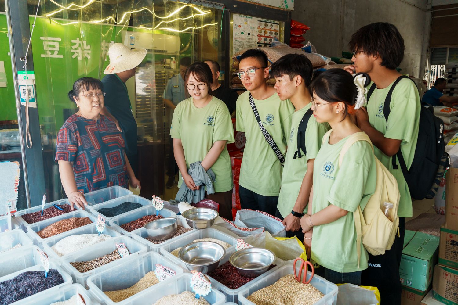 實踐團(tuán)與豆豆雜糧店店主鐘良霞交流(通訊員 付欣然 攝)