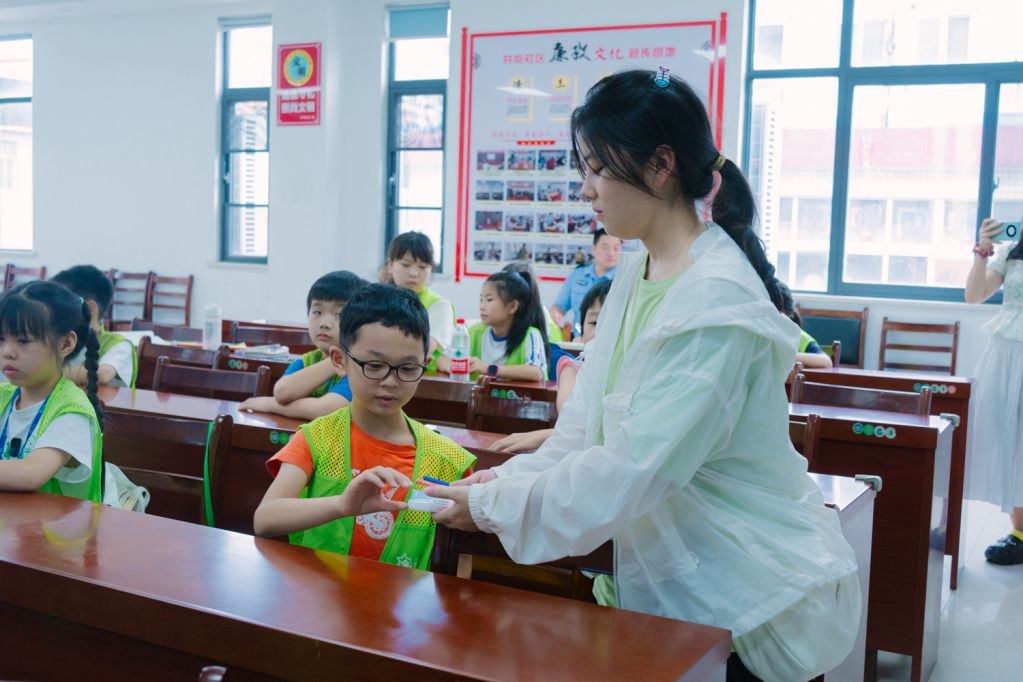 實踐團(tuán)成員陳伊雯與孩子們互動(通訊員 付欣然 攝)