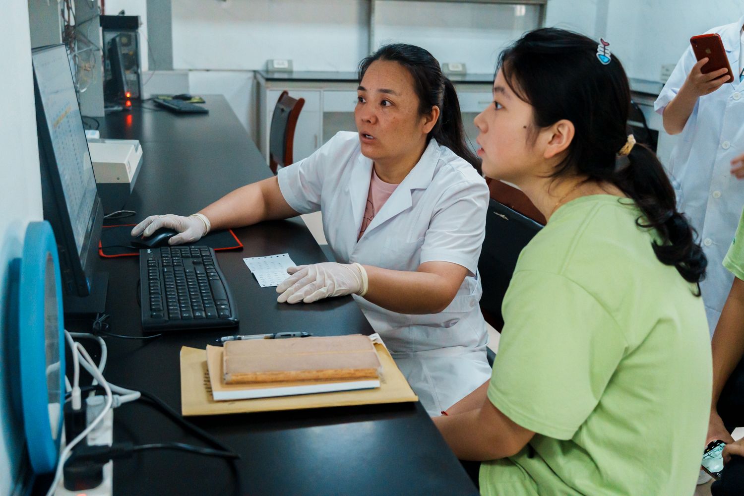 檢測中心檢測員指導(dǎo)實踐團(tuán)進(jìn)行數(shù)據(jù)處理(通訊員 付欣然 攝)