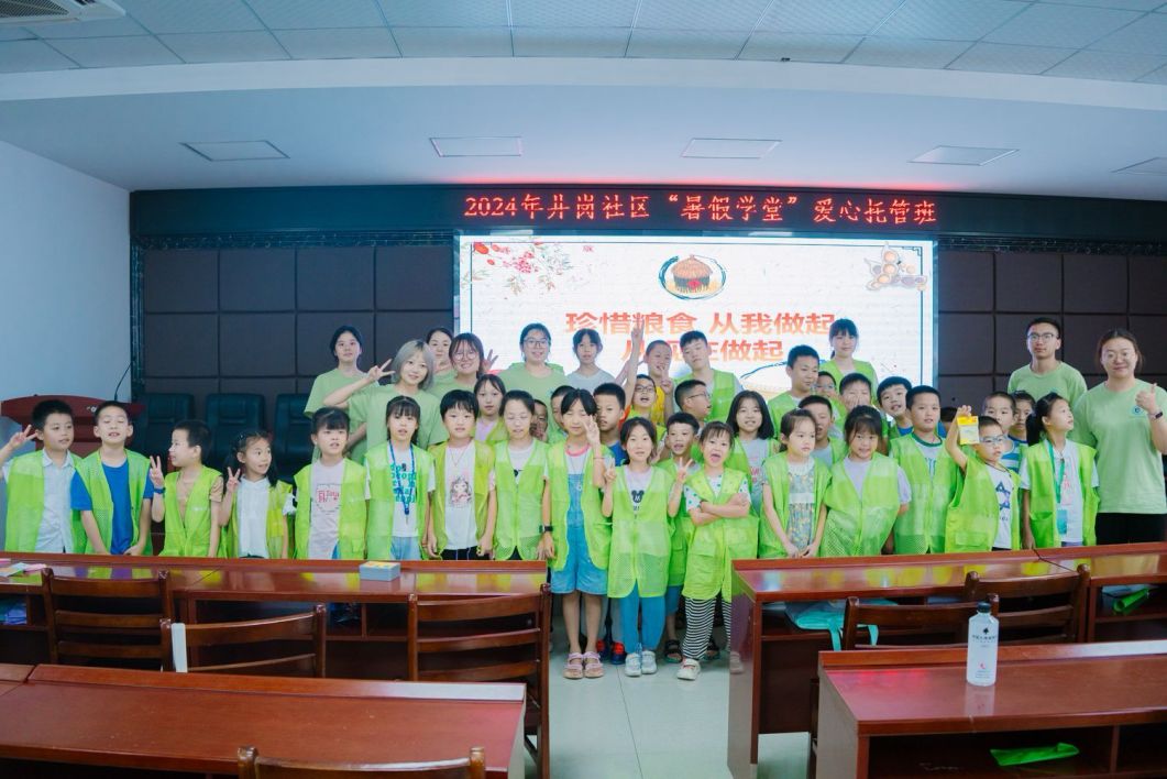 實(shí)踐團(tuán)與景江社區(qū)愛心托管班的小朋友們合影留念(通訊員 黃梓君 攝)