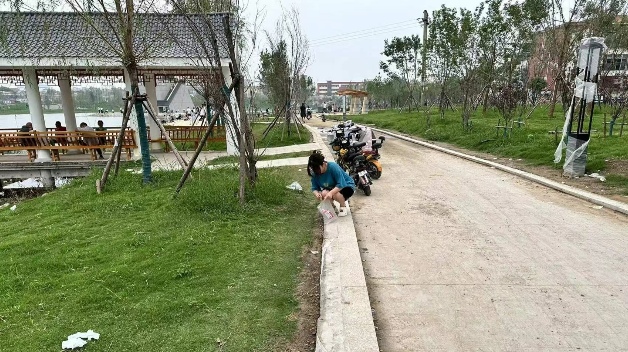 在活動的中期,隊員們在王寨村展開了一系列的環(huán)保實踐與互動。7月21日到7月23日,團隊分組前往王寨村的各個區(qū)域,開始了撿拾垃圾的行動。實踐團隊的隊員們手持垃圾袋和夾子,沿著村道、河邊、田間,細心地撿拾著每一片垃圾;顒蝇F(xiàn)場,隊員們分工明確,配合默契,不放過任何一個角落,不遺漏任何一片垃圾,與村民們共同清理了王寨村周邊的環(huán)境,使村莊面貌煥然一新。隊員宋冉說:“雖然撿垃圾很辛苦,但看到環(huán)境變得整潔,心里感到無比的滿足。看到村民們對我們活動的認可,我感到非常欣慰。未來我們一定會繼續(xù)參與環(huán)保事業(yè),為建設(shè)美麗中國貢獻自己的力量。”