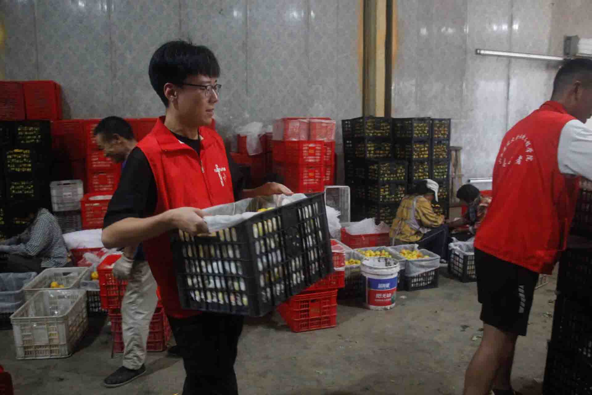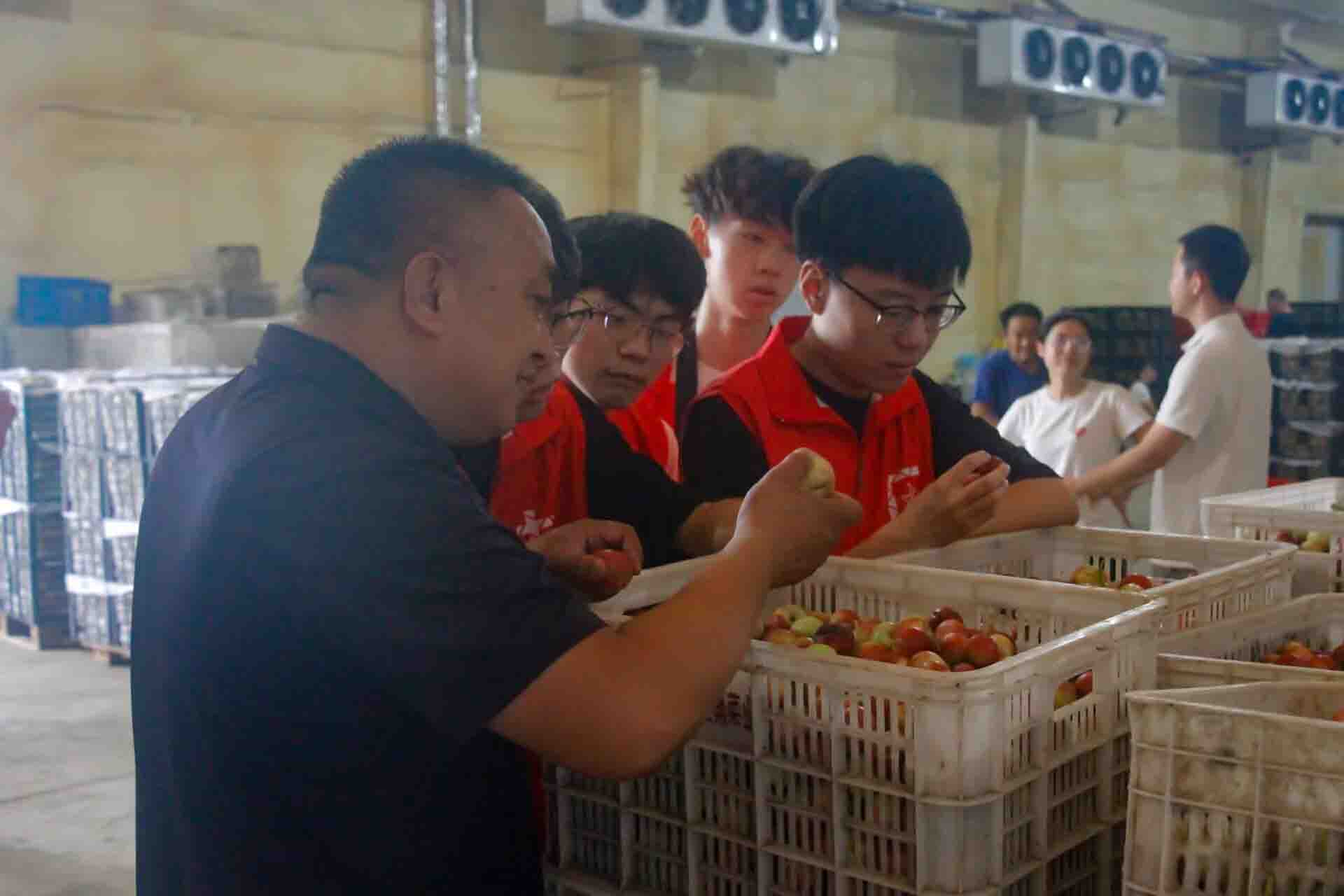 馬書記和王書記帶領(lǐng)團隊參觀了當?shù)孛厶液献魃绲能囬g以及冷庫,在車間中大家看到了冷庫門口堆放的大量蜜桃,并積極參與了村民們分揀、裝箱的過程,其桃子品種多、品質(zhì)高,且銷售半徑橫跨廣東、天津、北京及省內(nèi)各大城市,銷售前景廣闊,每年都給村集體和村民帶來可觀的收益。隨后團隊有幸品嘗了當?shù)氐?ldquo;香妃桃”,香甜可口的口感讓大家贊不絕口。