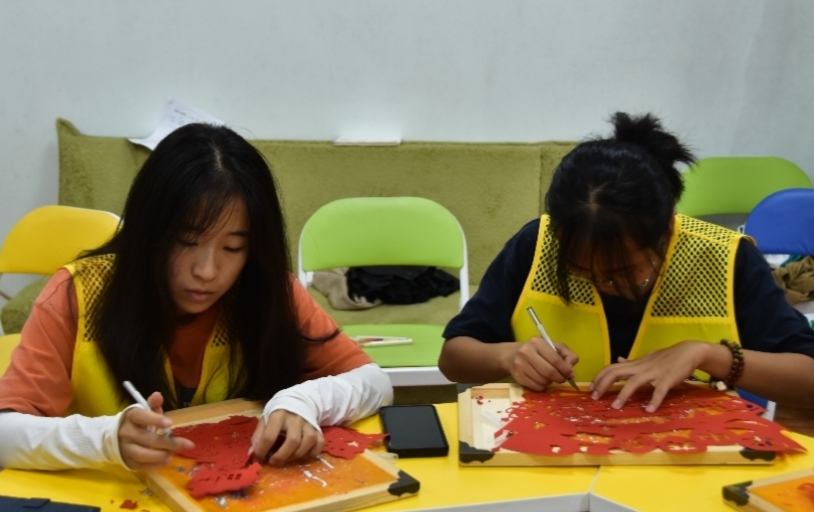 圖為實踐隊員學(xué)習(xí)剪紙畫面 通訊員 崔震奇 供圖