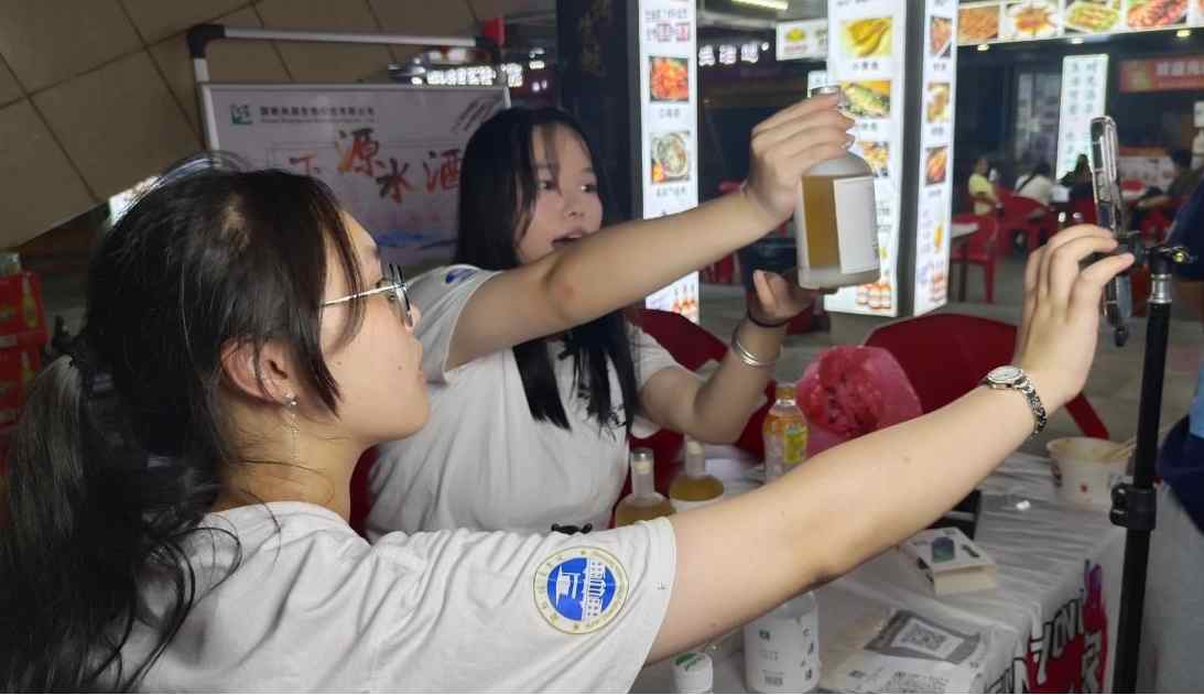 隨著夜色漸濃,廣場上的人潮逐漸散去,但團隊的宣傳并未停止。他們將陣地轉移到了宵夜店和直播間,通過向宵夜店顧客介紹水酒以及免費品嘗活動,讓水酒的消費場景更加豐富,也希望借此讓更多年輕人了解到水酒這一傳統(tǒng)酒。同時,線上直播也取得了顯著成效,團隊成員們從原料、產(chǎn)地、口感等方面向直播間的觀眾詳細介紹下源水酒,直播觀看人數(shù)和評論互動的活躍度都有了顯著提升。