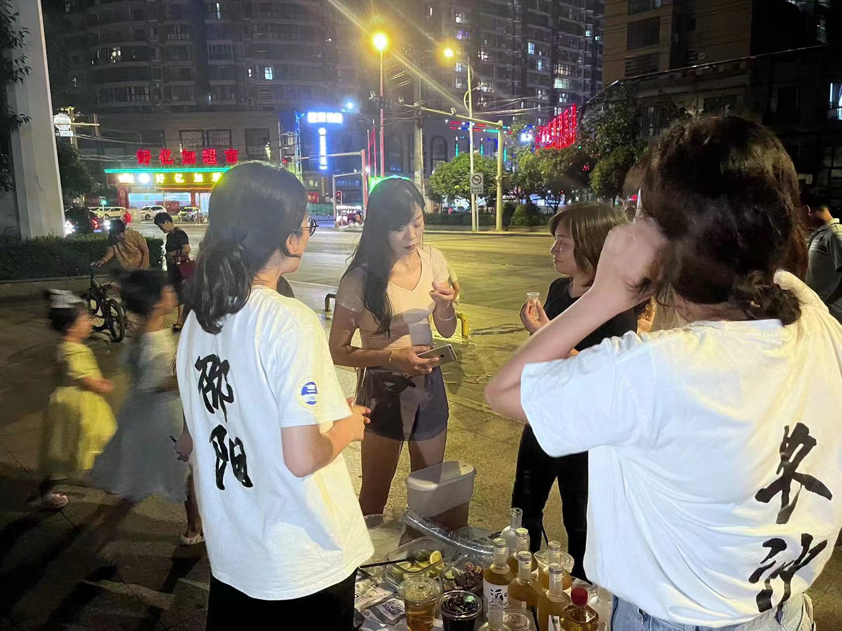 隨著太陽西沉,夏夜的炎熱并未減退,但江邊散步的市民和廣場上的居民卻因“酒別重逢”團隊的到來而感到一絲涼意。團隊成員向來來往往的群眾宣傳水酒,將印有產(chǎn)品信息的扇子發(fā)放到顧客手中,讓下源水酒在人群的討論中傳得更遠。